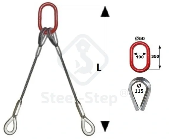 Dispozitiv de ridicare din cablu cu 2 ramuri G-PK tip - Wire rope sling, 2 legs (with thimble eyes)