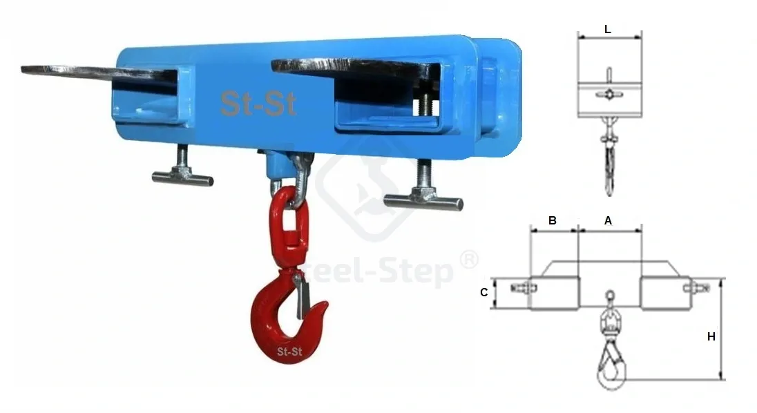 A forgó horoggal ellátott targoncavilla adapter ideális megoldás targonca segítségével történő biztonságos emeléshez és pontos terhek pozicionálásához, különösen nem szabványos alakú vagy forgatást igénylő tárgyak esetén. A tartós szerkezeti acélból, korrózióvédelemmel készült adapter hosszú élettartamot és megbízható működést biztosít. Egyszerűen csatlakoztatható a targonca villáihoz. A seklivel és csapágyazott, 360°-ban forgatható horoggal felszerelt kivitel biztonságos használatot és pontos kezelhetőséget garantál. Az adapter gyorsan, szerszám nélkül, egyetlen kezelő által felszerelhető vagy cserélhető. Megfelel a 2006/42/EK Gépek Irányelvnek, valamint az EN 13155 szabványnak. Amennyiben a megfelelő termék kiválasztásával, műszaki alkalmasságával kapcsolatban kérdése van, forduljon szakembereinkhez! Telefon: 06 (52) 316-319